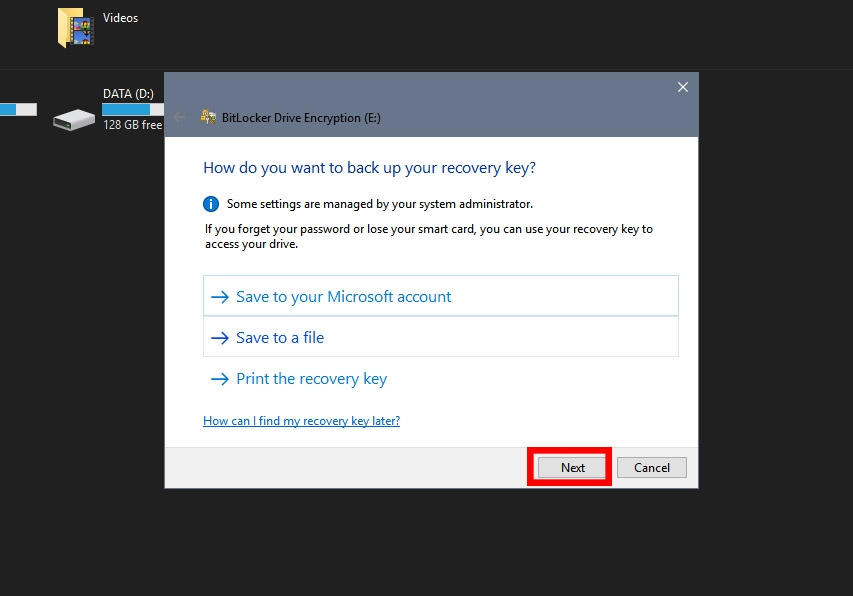 Bước 4: Click chọn một trong hai tùy chọn mã hóa.