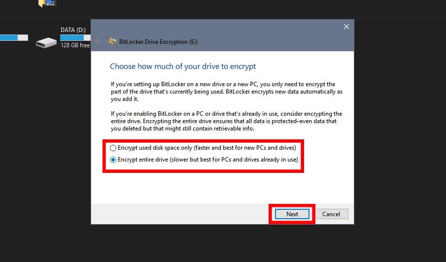 - Encrypt entire drive (mã hóa toàn bộ USB).