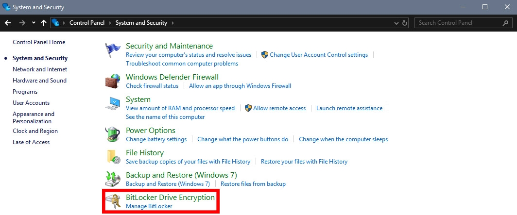 Bước 3: Click vào mục BitLocker Drive Encryption.