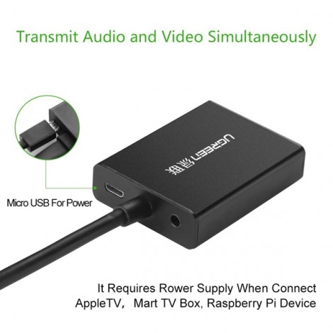 Cáp chuyển HDMI to VGA UGREEN 40233 hỗ trợ 1920×1080 60Hz(Đen)