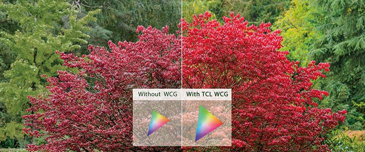 Công nghệ Wide Color Gamut giúp hình ảnh trên tivi nhiều màu sắc hơn thay vì dải 3 màu cơ bản RGB (đỏ, xanh lá, xanh dương) bằng cách bổ sung thêm màu trắng.