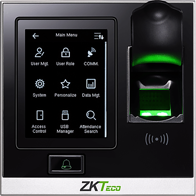 | Chức năng | DST (Daylight saving time), Automatic Status Switch, Record query, user ID kiểu T9 (tối đa 9 ký tự), Anti-passback (chống quay ngược), Scheduled-Bell (lập lịch chuông báo), Printer (tùy chọn), ADMS (tùy chọn), Webserver (tùy chọn) |