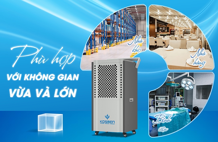 Máy hút ẩm công suất lớn Kosmen KM-150S là thiết bị được nhiều kho xưởng, nhà máy và cơ sở sản xuất tin dùng, đặc biệt ứng dụng nhiều trong các kho nguyên liệu, kho thành phẩm, kho bảo quản và xuất khẩu,...