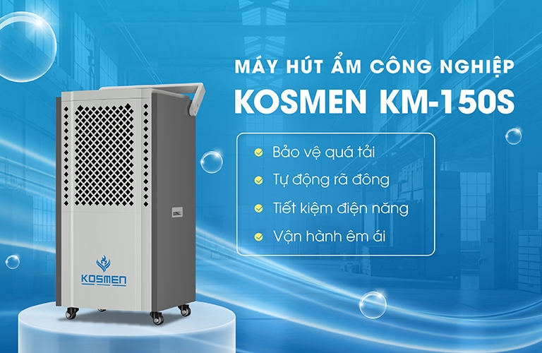 Máy hút ẩm công nghiệp Kosmen KM-150S ứng dụng công nghệ hiện đại đến từ Đức với nhiều tính năng ưu việt trong phân khúc máy hút ẩm công suất cao, đáp ứng nhu cầu cho mọi doanh nghiệp trong các kho bảo quản và sản xuất.