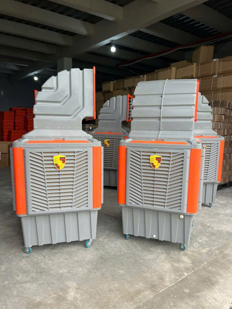 Quạt làm mát công nghiệp KF - 19 là thiết bị làm mát bằng hơi nước, được thiết kế để sử dụng cho không gian rộng lớn từ 100 - 150m². Với công suất mạnh mẽ 1.500W và lưu lượng gió 35.000 m³/h, sản phẩm này giúp giảm nhiệt hiệu quả, mang lại bầu không khí mát mẻ, thoáng đãng, phù hợp với nhiều không gian như nhà xưởng, nhà hàng, quán cà phê, hội trường hoặc các khu vực ngoài trời.