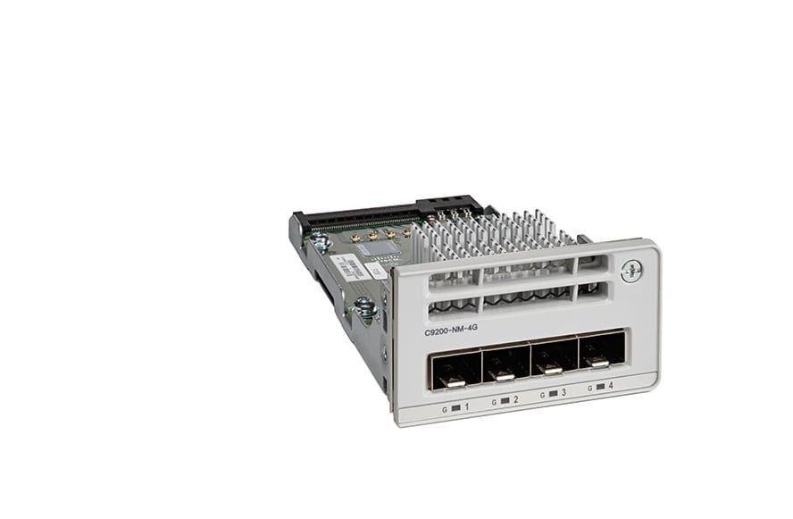 C9200-NM-4G Catalyst 9200 4 x 1GE Network Module là 1 trong 4 loại network module dành cho các thiết bị chuyển mạch Cisco Catalyst 9200 Series. Network Module này được tích hợp tương thích với các cổng Uplink của các thiết bị chuyển mạch Catalyst 9200.