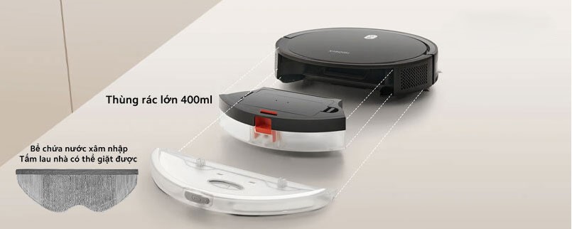 Thùng chứa bụi 400ml và bình nước 90ml tách biệt, dễ vệ sinh