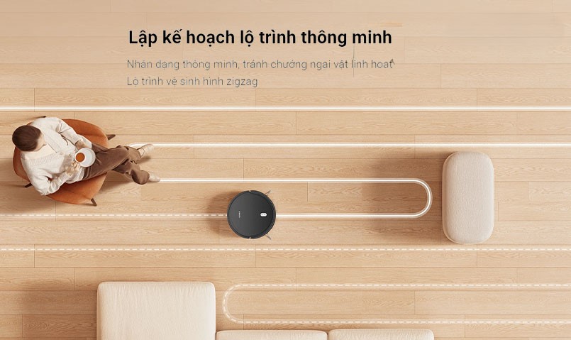 Robot quét và làm sạch theo đường di chuyển hình chữ Z, phủ đều toàn bộ diện tích sàn, tránh lặp lại vị trí và sót bụi bẩn.