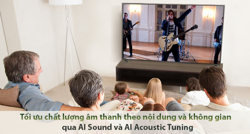 - Công nghệ AI Sound điều chỉnh âm thanh tương thích với nội dung đang trình chiếu, mang đến sắc âm sống động, mạnh mẽ.