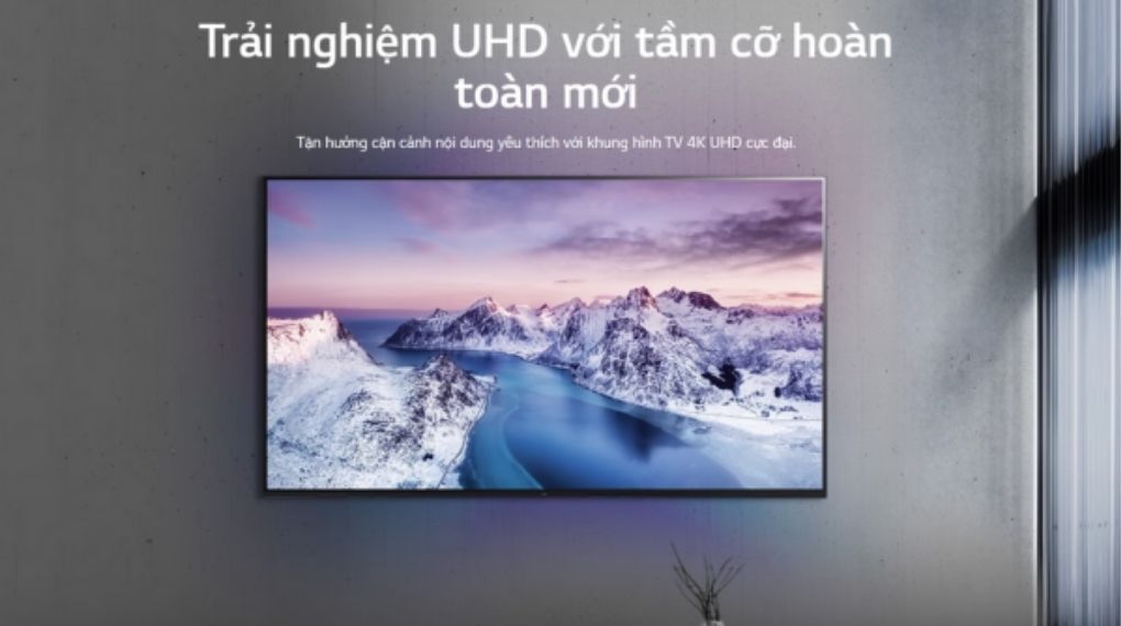 Tivi LG 65UT8050PSB sở hữu màn hình rộng 65 inch và viền siêu mỏng tối giản ở cả bốn cạnh, làm toát lên sang trọng và hiện đại cho không gian sống của bạn. Với kích thước này, tivi này phù hợp để bố trí trong phòng khách, phòng ngủ gia đình, phòng họp hoặc sảnh nhỏ trong các không gian gia đình hoặc doanh nghiệp.