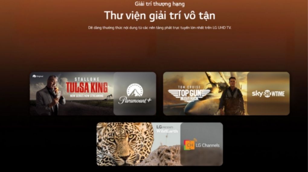 Hệ điều hành WebOS 23: Với giao diện đơn giản, thân thiện, giúp người dùng dễ dàng tìm kiếm và truy cập nội dung yêu thích.
