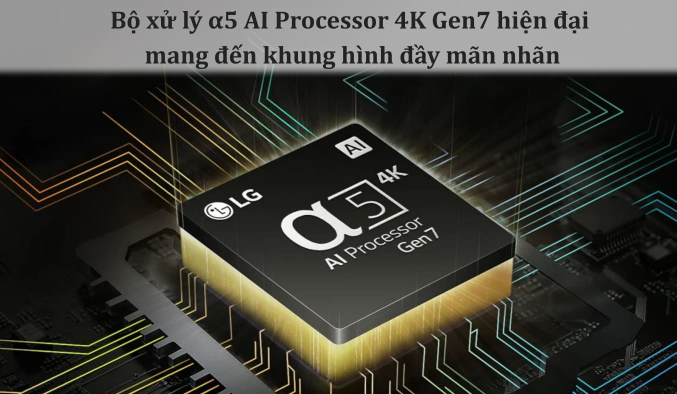 Tivi LG 65 inch 65NANO81TSA được trang bị bộ xử lý α5 AI Processor 4K Gen7 tối ưu độ sáng để khung hình trở nên rực rỡ và mang đến âm thanh đạt chất lượng cao hơn để bạn đắm chìm trong trải nghiệm xứng tầm tuyệt đỉnh với hình ảnh chất lượng cùng âm thanh sống động.