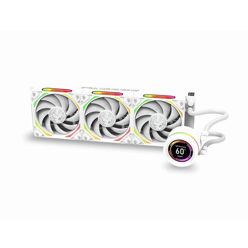 Tản nhiệt nước CENTAUR CT‑H500‑360 (Trắng) là phiên bản cao cấp hơn của dòng 240mm, sở hữu radiator nhôm 360 mm cùng hệ thống 3 quạt Noble Fan 120mm RGB, đem lại khả năng tản nhiệt vượt trội — rất thích hợp cho các hệ thống ép xung hoặc hoạt động liên tục cao.