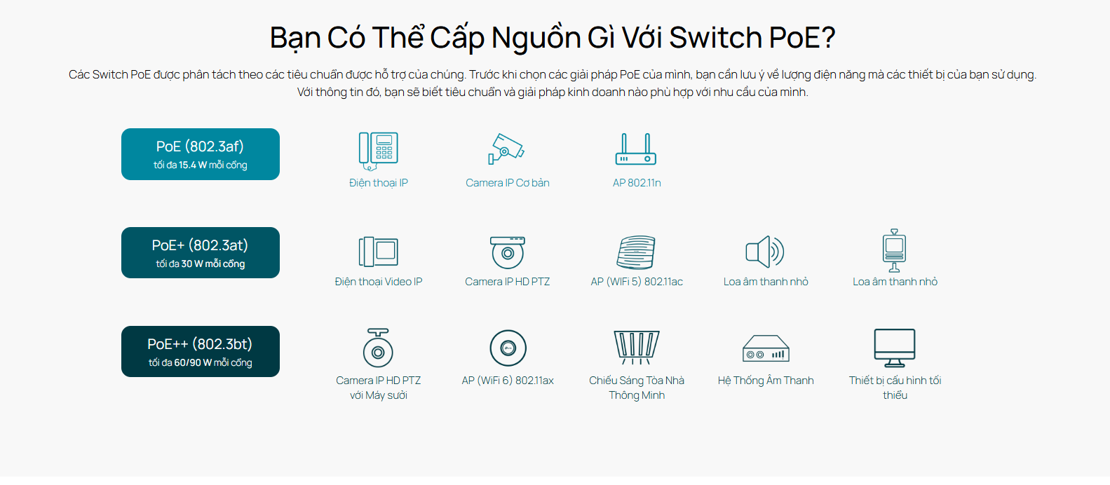 Sử dụng PoE hiệu quả: Đảm bảo rằng bạn chỉ cấp nguồn cho các thiết bị cần thiết, vì PoE tiêu tốn năng lượng và có thể ảnh hưởng đến hiệu suất tổng thể của switch.