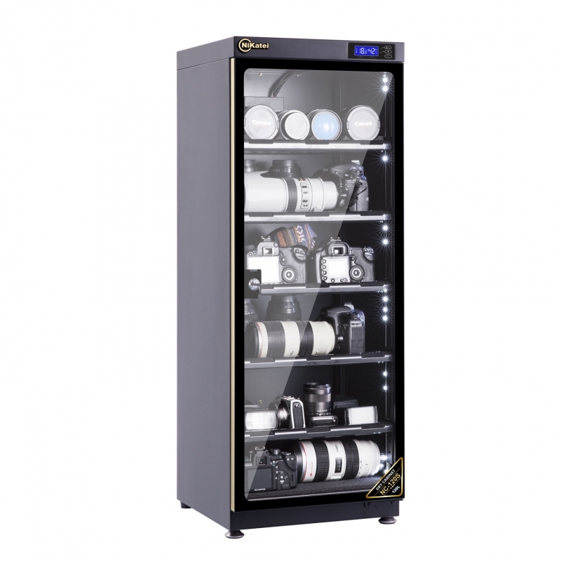 - Nikatei NC-120S (120 lít) gồm một khoang lớn có cánh cửa kính 2 lớp chống xước được thiết kế chịu sự va đập và đảm bảo tuyệt đối độ ẩm bên trong với hệ thống gioăng cao su từ bao quanh tạo nên sự chắc chắn mỗi khi mở ra đóng vào.